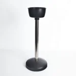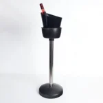 Pie de cubitera inyectado en color negro para 1 botella. Fabricado en material PP y tubo en acero inoxidable. Reutilizable, con alta resistencia al rayado y 100% reciclable. Fabricado con alta resistencia a los impactos.