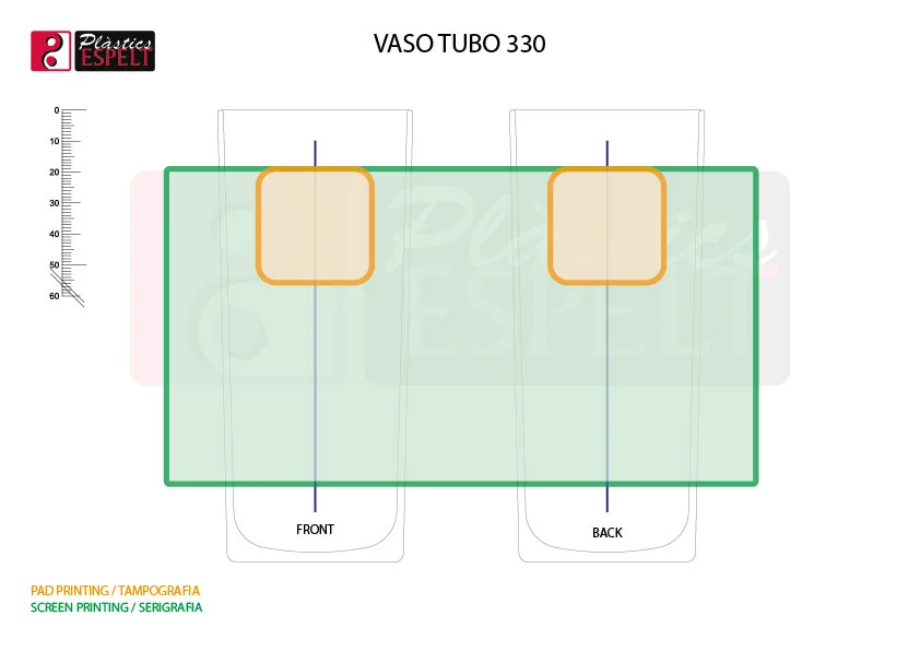 Vaso Tubo 330 de plástico, con capacidad de 33cl, alta transparencia, irrompible, reutilizable y 100% reciclable.