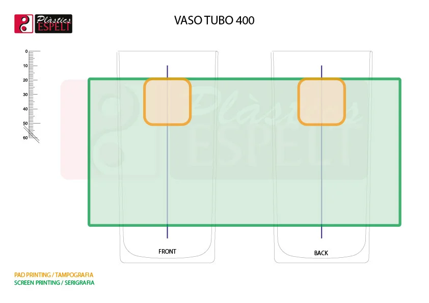 Vaso Tubo 400 de plástico, con capacidad de 40cl, alta transparencia, irrompible, reutilizable y 100% reciclable.